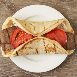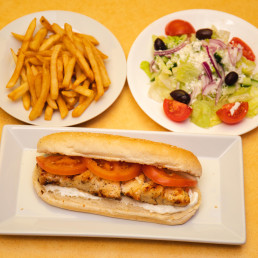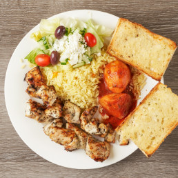 If you're looking for a quick and satisfying meal, the Souvlaki on a Pita Combo is a must-try. This dish features succulent skewers of souvlaki meat tucked inside warm pita bread, accompanied by a side of small fries and a mini Greek salad. It's the perfect option for a hearty lunch or a light dinner.